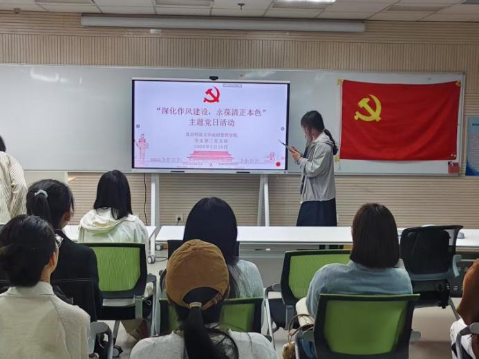 2025年5月18日,北京师范大学政府管理学院学生第二党支部在后主楼2030会议室开展了以“深化作风建设,永葆清正本色”为主题的党日活动,本次活动由党支部纪律委员刘津源同志主持。