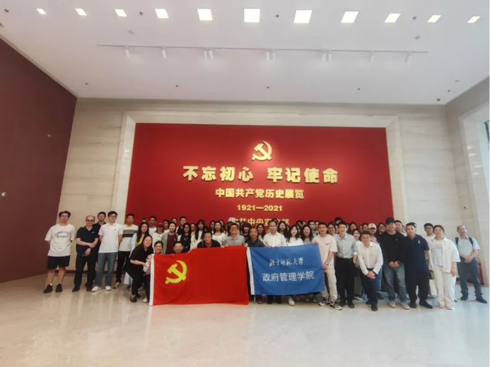 在实践部分,2025年5月21日,学一支部与政府管理学院教工一支部、教工二支部、学生一支部、学生三支部、经济与资源管理研究生党支部等支部联合组织开展主题党日活动,赴中国共产党历史展览馆参观学习,重温百年奋斗征程,进一步加强了党员同志对中央八项规定精神的理解,更促进了学院内外的不同支部之间的友好交流和合作。