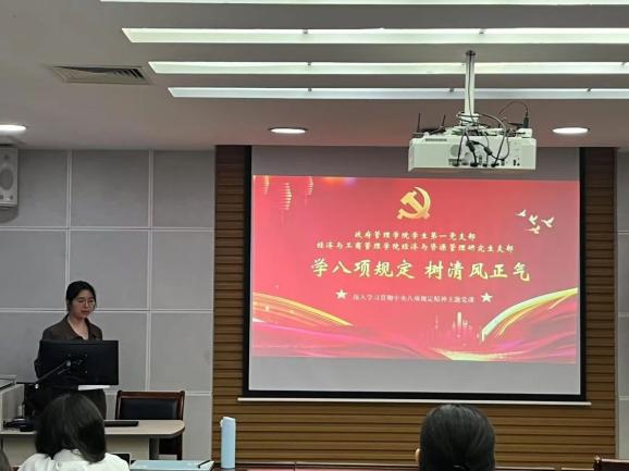 2025年6月12日,学生第一党支部于主楼A509开展主题党课学习。本次学习主题为“强化作风建设,凝聚奋进力量”,由支部书记毕雪晴同志为支部同志带来《学八项规定 树清风正气——深入学习贯彻中央八项规定精神》主题党课,她详细介绍了中央八项规定及其实施细则的背景、核心与实质,强调了学习中央八项规定精神的重要意义;结合党的作风建设的历史溯源和总书记关于党的作风建设的重要论述,进一步阐释了中央八项规定精神的内涵和价值。最后,通过警示教育案例,展示了违反中央八项规定精神的严重后果,警示党员干部要时刻保持廉洁自律,自觉遵守相关规定。
