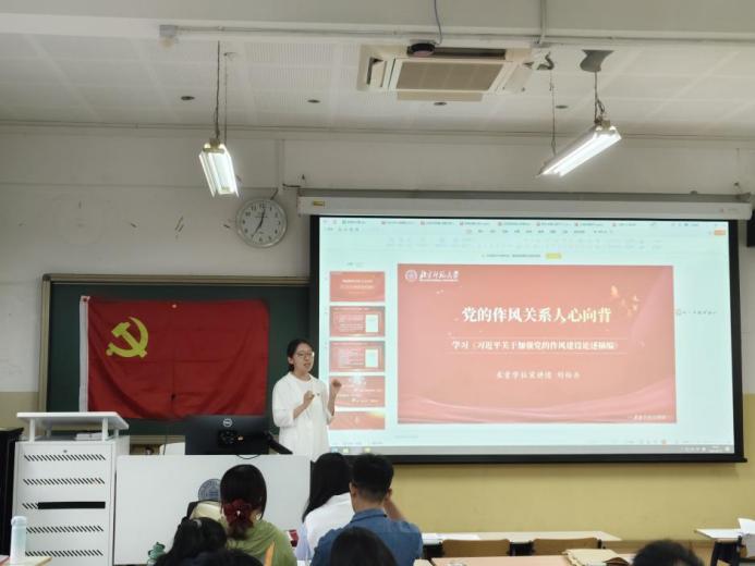 2025年6月12日,学生第二党支部在艺术楼401开展“强化作风建设,凝聚奋进力量”主题党日活动,并邀请马克思主义学院求索学社宣讲团刘怡乐作《党的作风关系人心向背——学习<习近平关于加强党的作风建设论述摘编>》主题宣讲。