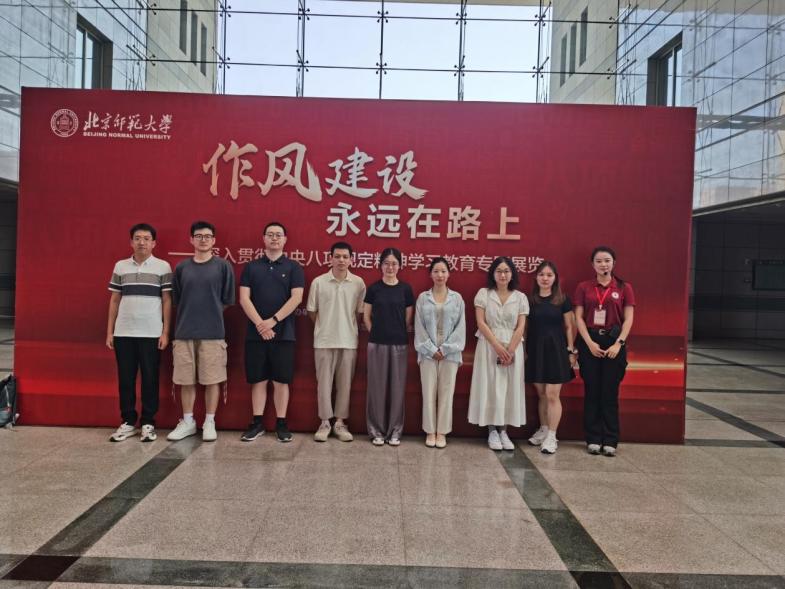 2025年6月11日,学生第九党支部组织支部成员赴海淀本部主楼四季厅参观“作风建设永远在路上——深入贯彻中央八项规定精神学习教育专题展览”。在微党课大赛一等奖获得者刘倩同志的讲解下,党员们通过图文资料深刻感悟中央八项规定精神的内涵与实质。
