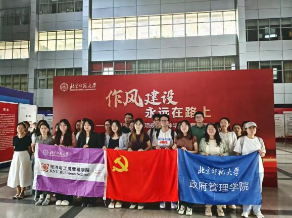 主题党课后,政管学一支部和经济与资源管理研究生支部共同前往主楼四季厅参观学校“作风建设永远在路上——深入贯彻中央八项规定精神学习教育专题展览”,两支部成员进行交流研讨。