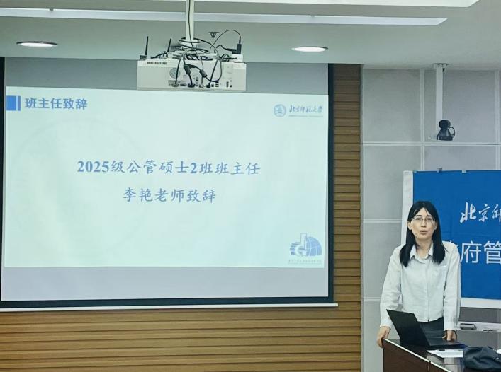 班会伊始,班主任李艳老师向班级全体新生表示热烈欢迎。李艳老师指出研究生阶段在学习方式、科研要求和成长路径等方面与本科阶段存在显著差异,期待同学们未来能够在25级公管硕士2班相互学习、充实研究生生活,奋勇向前,创造属于自己的精彩人生。