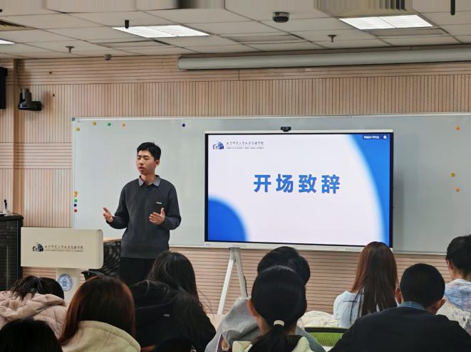 班长赵柳皓进行开场致辞,他简要总结了近期班级工作,对本次班会的目标、任务作出了说明。他表示,诚信是我们共同追求的道德品质,“纵有考试分秋色,犹须诚信辨英雄”,要把诚信作为我们集体价值的底色。他还带领同学们学习了学院日常事务办理有关规定。