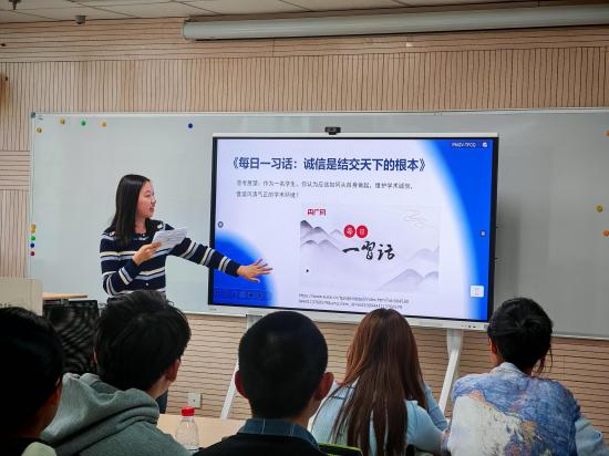 王萧媛说,古人治学,首重诚与信,如《中庸》言“诚者物之终始,不诚无物”,踏实记录每一组数据、独立构思每一篇文章、坦然面对每一次考试,才是对学问的敬畏,对自己的负责。以诚治学,方能求得真知,立得真品格。