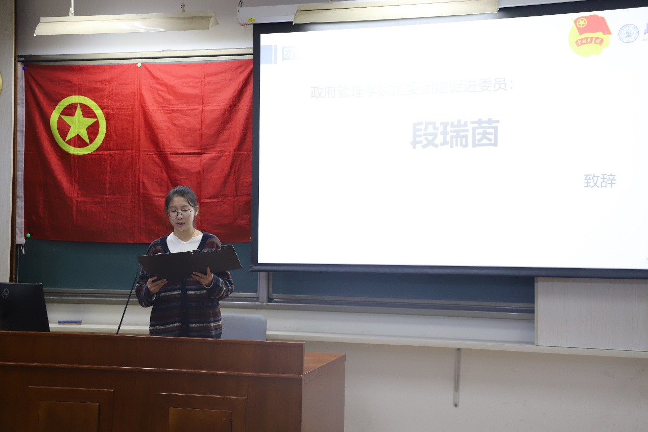 团建促进委员段瑞茵总结了过去一个月的工作成就,分享了工作中每位干事的成长与进步。她指出希望在大家认真对待每一项任务的同时能与大家成为好朋友,更加熟络。最后祝大家工作顺利,学习顺心。