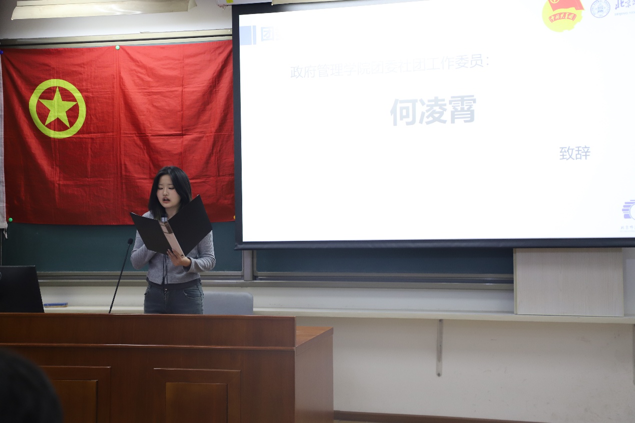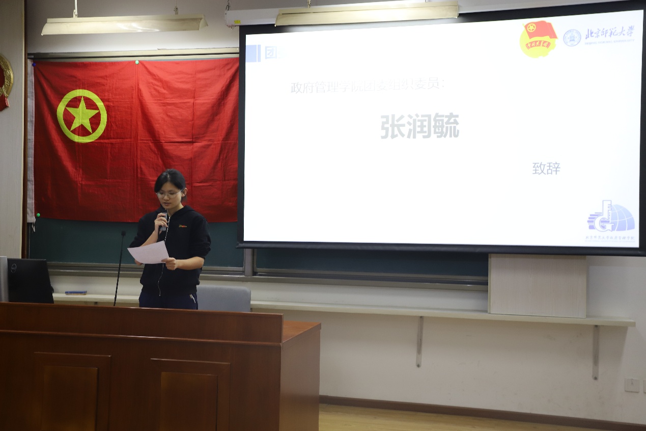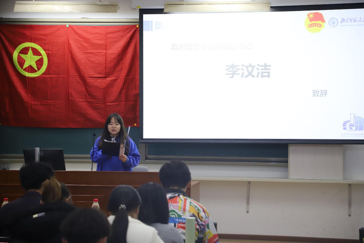 所有成员落座之后,团委副书记李汶洁上台致辞。她首先对到场的所有团委成员表示最热烈的欢迎,接着强调了团委是大学生活中一个不可或缺的成长舞台,希望大家在团委历练中能够明确人生方向,培养责任担当,为学院的发展和社会的进步贡献青春力量,最后对成员们寄予了对未来工作的期许与美好祝愿。
