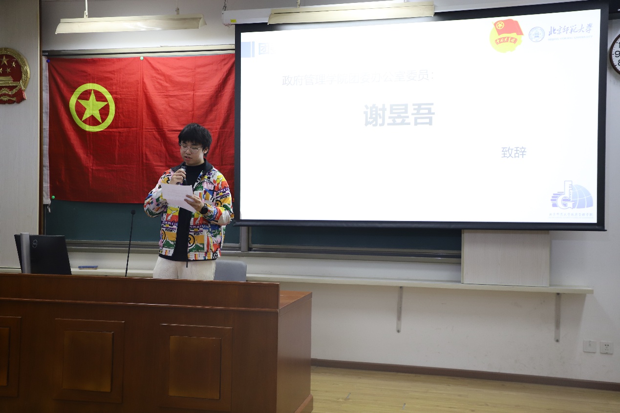 办公室委员谢昱吾总结了过去一段时间的活动工作,介绍了办公室的运转机制,向各位干事们分享了自己在团委工作中的成长与进步,希望未来大家都可以在工作中发现自己的潜能并获得归属感。