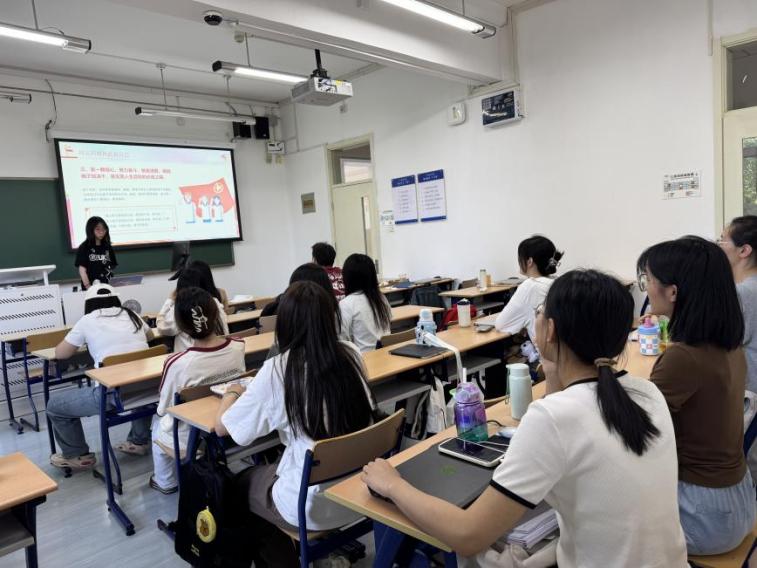 借助5月主题团日的契机,团支部邀请到青春讲师团的卢以若同学为同学们带来相关主题宣讲,以深化大家的理论认识。青春讲师团的卢以若同学以“风正好扬万里帆—深入贯彻中央八项规定精神学习教育”为主题展开宣讲,从三个方面进行了深入解读:中央八项规定为何成为党作风建设的金色名片;这张名片如何引领风气巨变;青年又该如何践行八项规定精神。
