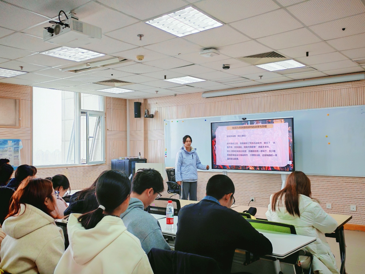 活动尾声,团支书周梓睿同学对本次学习进行总结,呼吁全体成员将铸牢中华民族共同体意识内化于心、外化于行,在日常学习生活中主动维护民族团结。此次活动不仅深化了同学们对民族共同体的理论认知,更激发了大家参与民族团结实践的热情,为团支部凝聚民族共识、传递团结力量奠定基础。