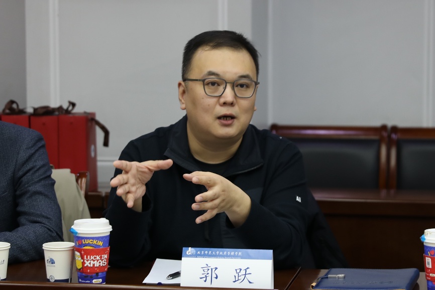 公共政策系系主任郭跃介绍了公共政策系在政策过程、城乡治理、智能社会治理等领域的研究布局,并介绍了国际公共政策会议和英文刊物的建设进展。院长助理章芡从国际交流角度,建议推动双学位联合培养、博士交换与博士后合作。MPA教育中心主任严宇介绍了学院MPA项目的学生规模与结构,提出可探索学生短期交流、暑期学校、大湾区专题实践等合作模式。信息资源管理系/农村治理研究中心研究员李春秋老师介绍了农研中心的智库建设情况。
