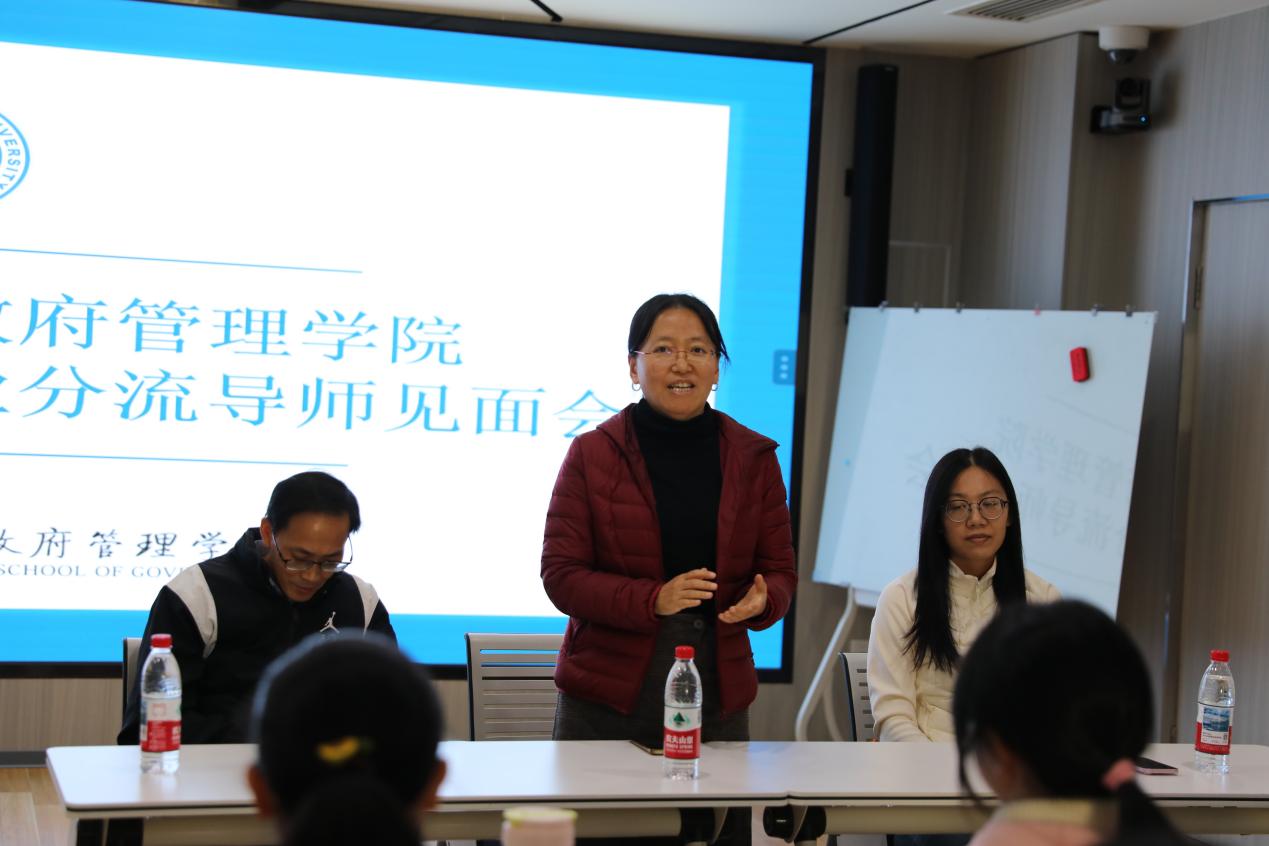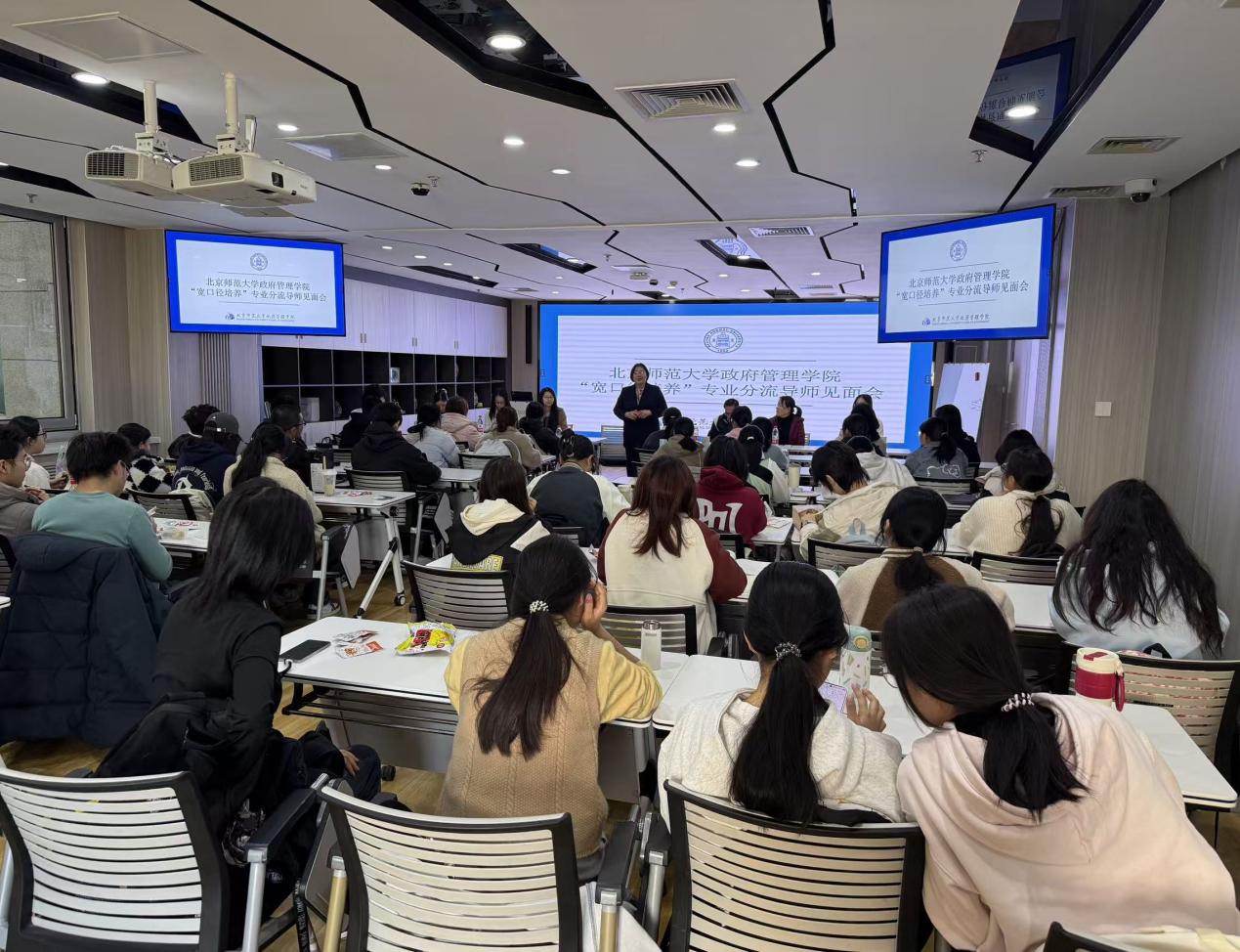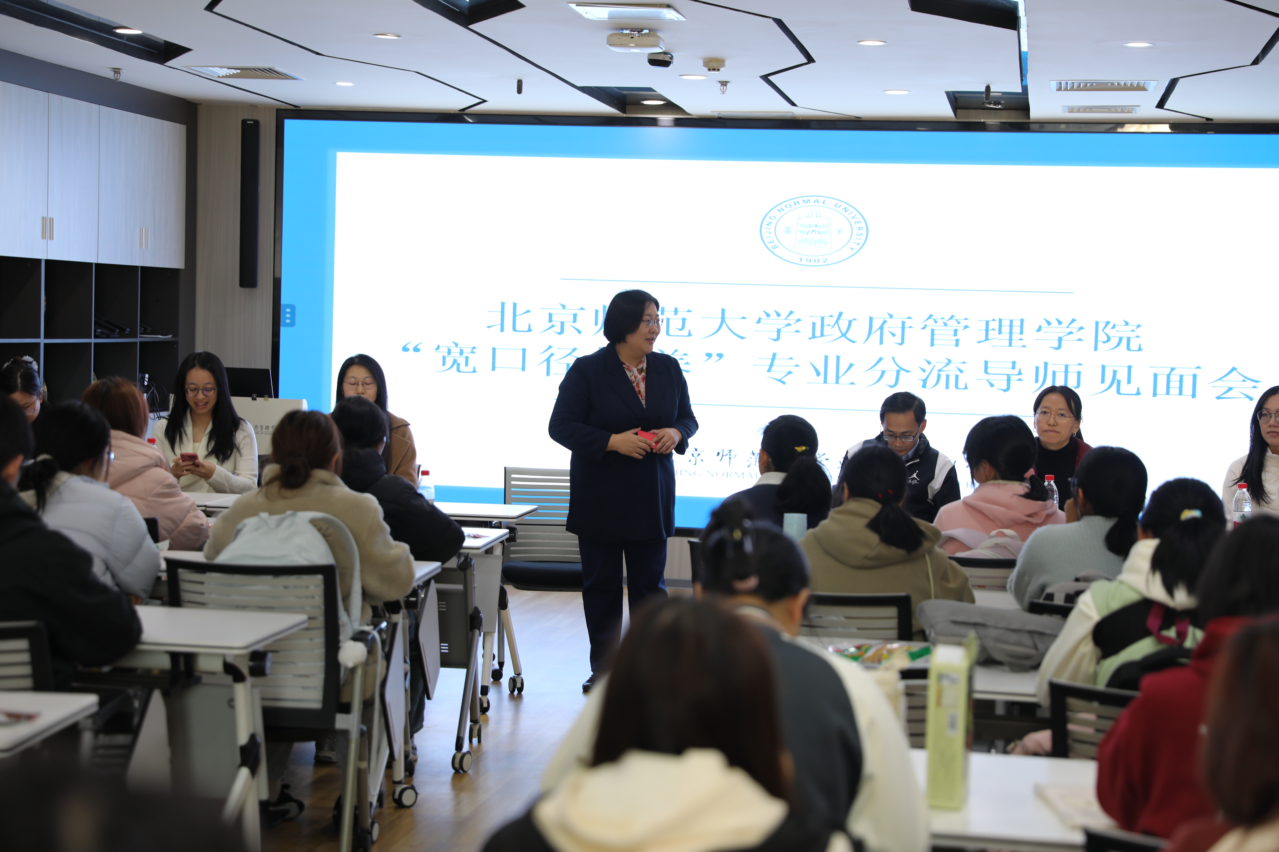 2025年11月3日,北京师范大学政府管理学院“宽口径培养与专业分流”宣讲会在主楼A506会议室顺利召开,此次见面会旨在进一步落实学院宽口径人才培养战略,搭建师生间高效沟通的桥梁,帮助公管大类学生深入了解各专业方向的特色与发展前景,为即将到来的专业分流工作提供参考。政府管理学院教学副院长果佳老师、行政管理系刘丽莉老师、公共政策系章芡老师、公共部门人力资源管理系系主任柯江林老师、信息资源管理系系主任刘晓娟老师、社会发展系周玲老师、2025级新生1班班主任王玲老师、3班班主任陈泳潼老师以及2025级公管大类的同学们参与了此次会议。
